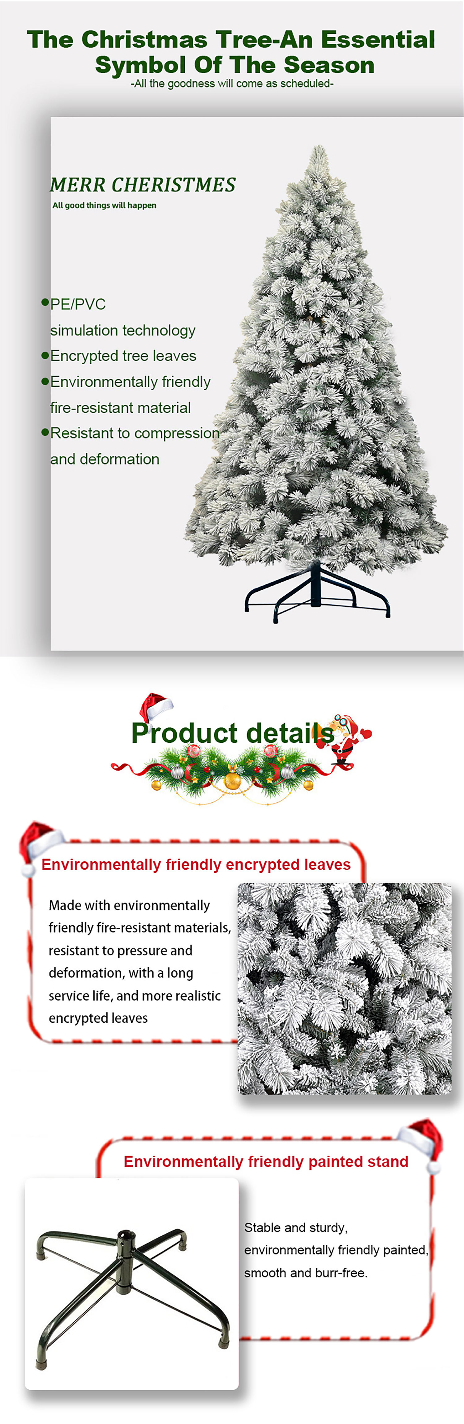 Bring the beauty of winter into your home with our premium snow Christmas tree. Made of flame-retardant PVC and hard needle branches, this tree is not only stunning but also safe for your family and home. With customizable height options ranging from 5 to 8 feet, you can find the perfect fit for your space. The tree's realistic snow-covered appearance will add a touch of wintery magic to your holiday decor. It's easy to assemble and store, making it the perfect choice for hassle-free holiday decorating year after year. Don't miss out on the chance to showcase this gorgeous tree in your home and make your holiday season unforgettable.