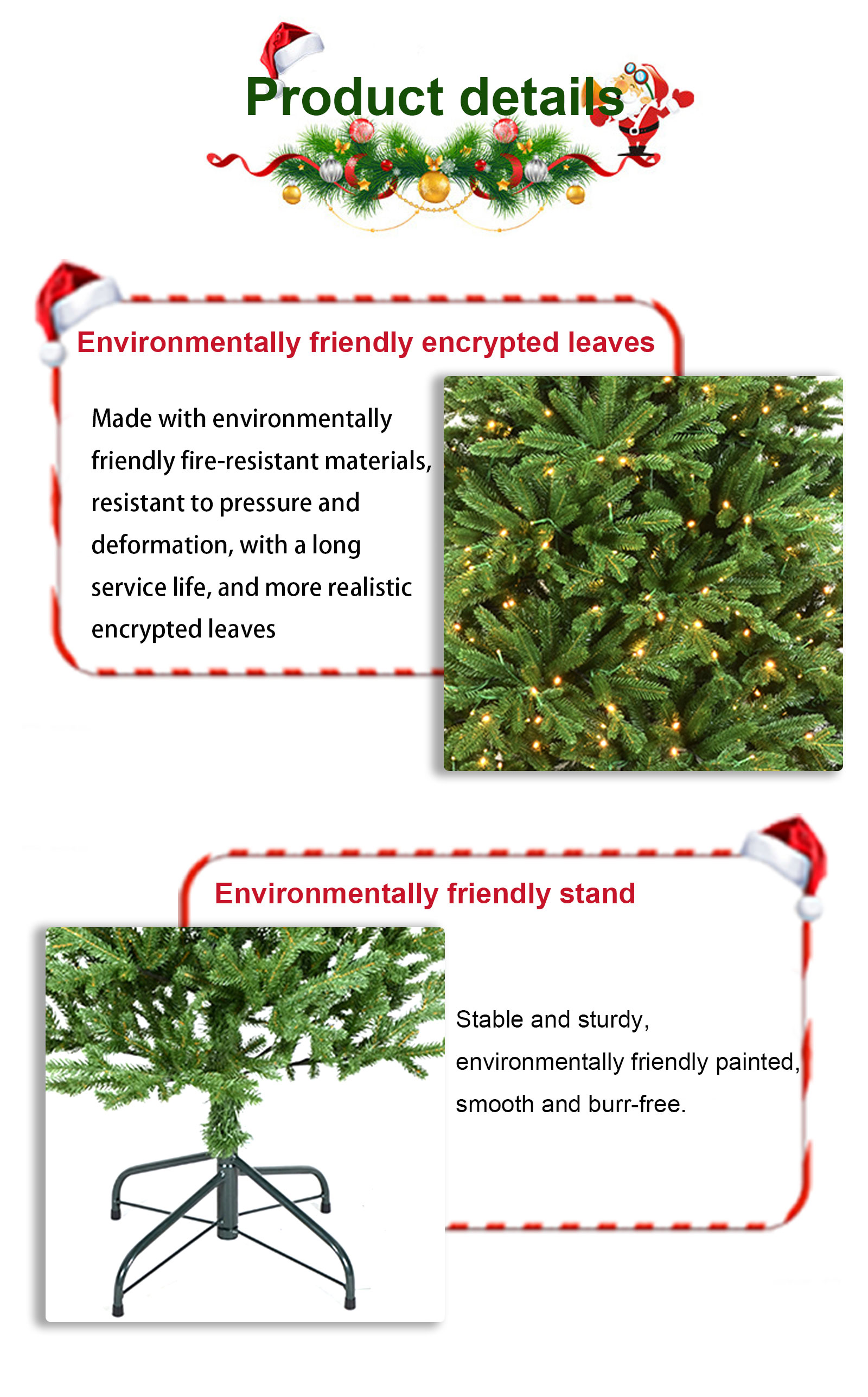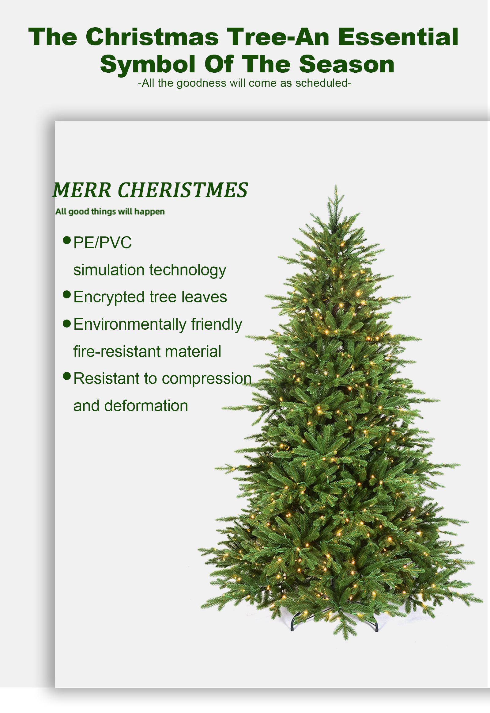 Customizable Pre-Lit Green PE Christmas Tree with 700 LED Lights" Description: "Illuminate your holiday season with our customizable pre-lit green PE Christmas tree. This stunning tree comes with 700 LED lights already installed, creating a warm and inviting ambiance. Available in various sizes, it's the perfect choice to add festive cheer to your home or office.