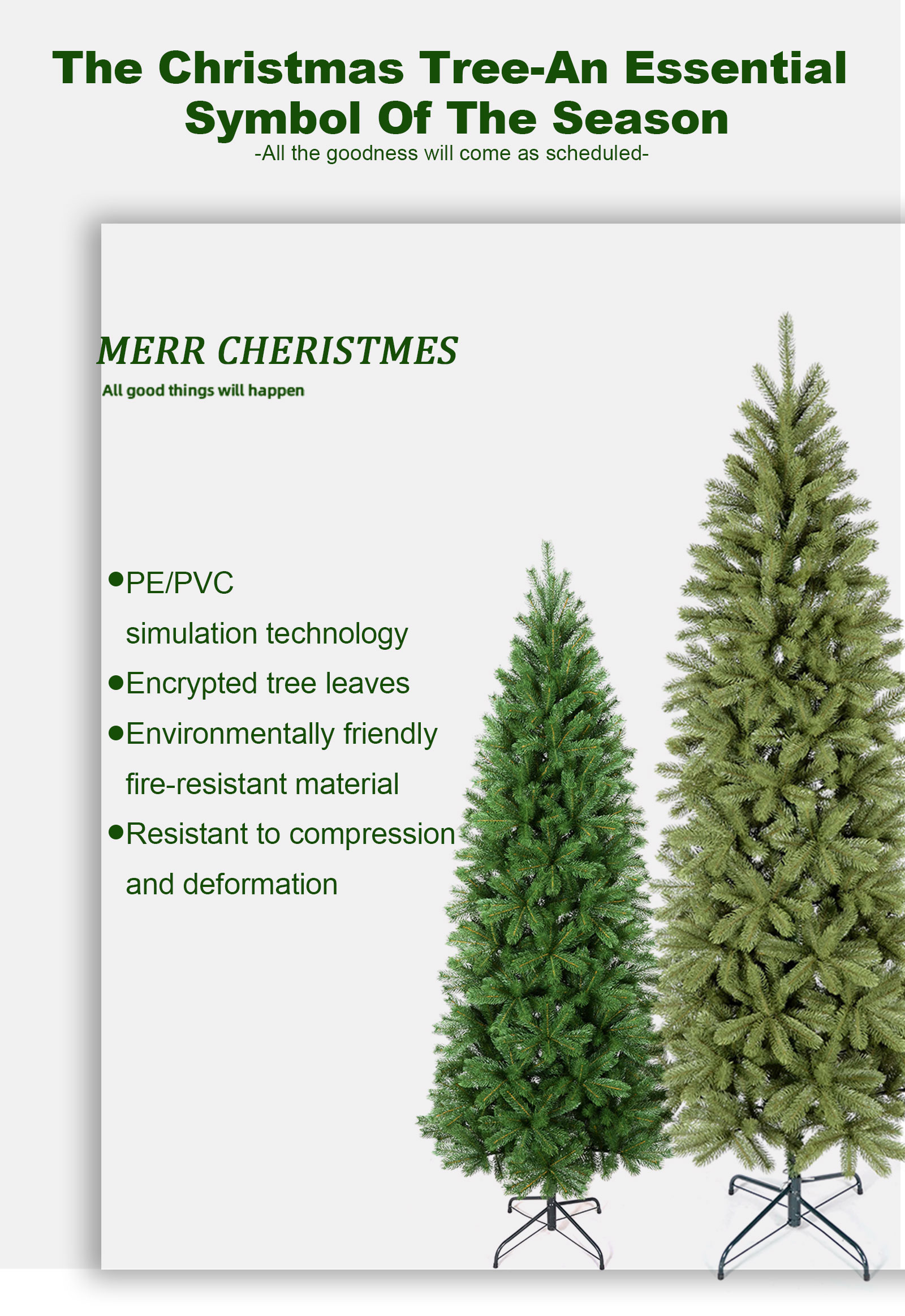 Add a burst of vibrant charm to your holiday decorations with our PE pencil Christmas tree. This unique tree, crafted entirely from PE materials, features a slim profile that fits perfectly in any space. What sets it apart is its vibrant array of colors adorning the branches, bringing a playful and whimsical twist to the traditional Christmas tree. With its eye-catching design and lifelike foliage, this pencil tree is sure to captivate and delight all who see it.